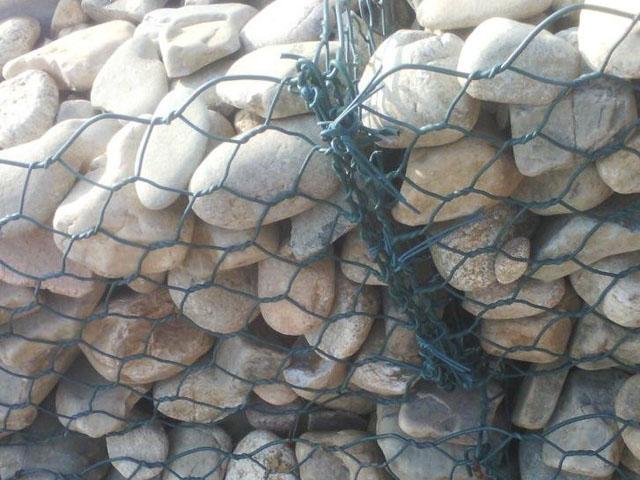 石籠網(wǎng)(格賓網(wǎng))是金屬線材編織的角形網(wǎng)(六角網(wǎng))制成的網(wǎng)箱,使用的金屬線徑是根據(jù)六角形的大小而不同。如果是金屬鍍層的金屬線六角形,則使用線徑為2.0mm到4.0mm的金屬線,如果是PVC包覆的金屬線編織的六角網(wǎng),則使用外徑為3.0mm到4.5mm的PVC(金屬)線,外框邊緣的線則使用比六角網(wǎng)線粗一號(hào)的線。